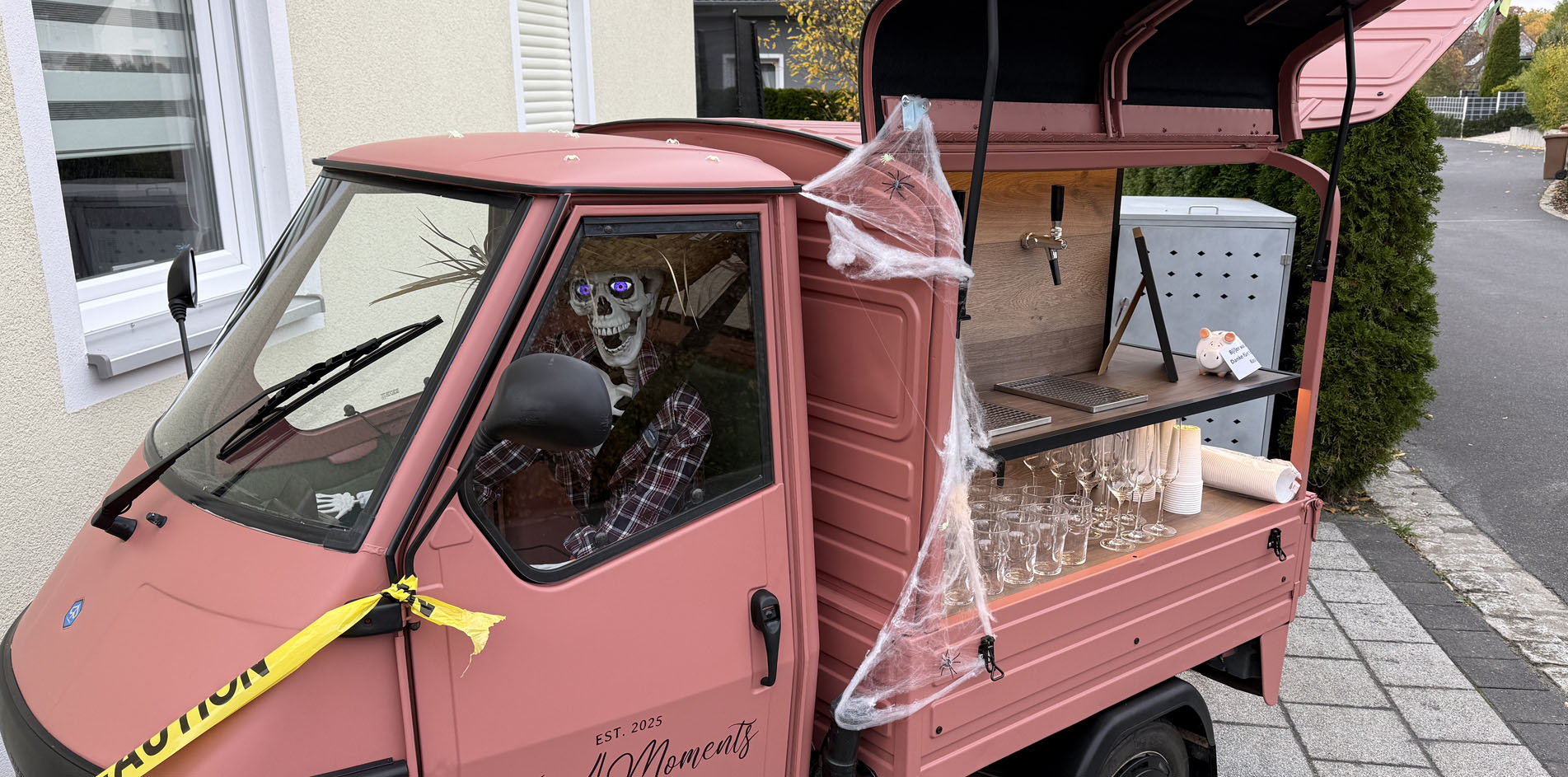 Sie suchen etwas besonderes für Ihren Sektempfang am Standesamt oder vor der Kirche? Unsere Bier und Prosecco Ape ist komplett autarkt und versorgt sich selbst mit dem nötigen Strom. Gerne bieten wir Ihnen ein individuelles Buchungspaket für Ihre Veranstaltung.